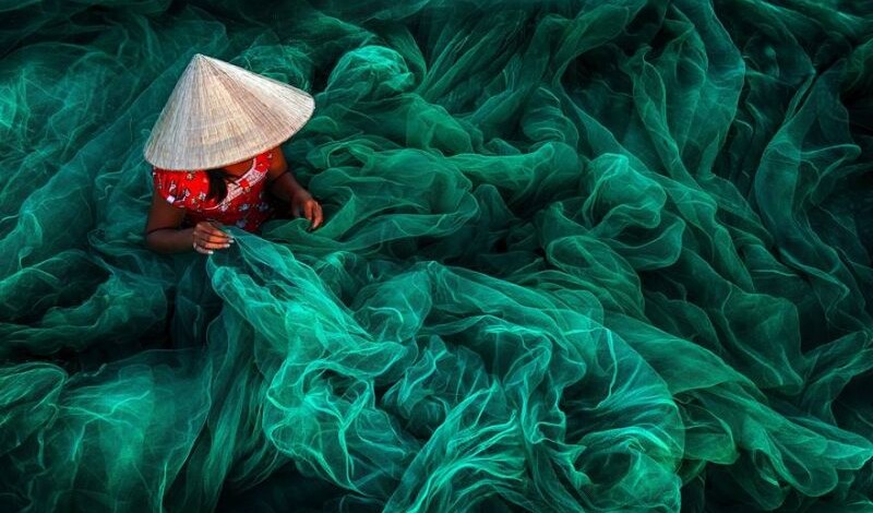 Aceasta aparține fotografului Danny Yen Sin Wong care a surprins o femeie din regiunea sud-vestică a Vietnamului în timp ce împletea o plasă de pescuit.