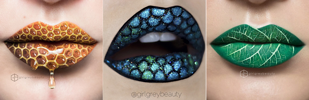 Andrea Reed este un makeup artist canadian talentat căruia îi place să deseneze. Pentru a îmbina cele două pasiuni ale sale, aceasta a început un proiect inedit, prin care își machiază buzele, realizând adevărate opere de artă. Fagure de miere, valurile mării, frunze, solzi de pește sau imprimeuri, sunt doar câteva dintre imaginile pe care și le-a realizat pe buze.