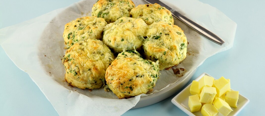 Presară pe suprafața de lucru făină și frământă acolo aluatul. Rulează-l puțin cu sucitorul ca să îl întinzi, după care taie-l în 8 părți egale. Pune aluatul într-o tavă tapetată cu hârtie de copt sau unsă cu ulei. Pe deasupra, unge fiecare bucată de aluat cu frișcă lichidă. Dă apoi tava la cuptor pentru aproximativ 20 minute sau până devin ușor aurii. Scoate-le din cuptor când sunt gata și lasă-le să se răcească, iar apoi păstrează-le acoperite până urmează să le servești.