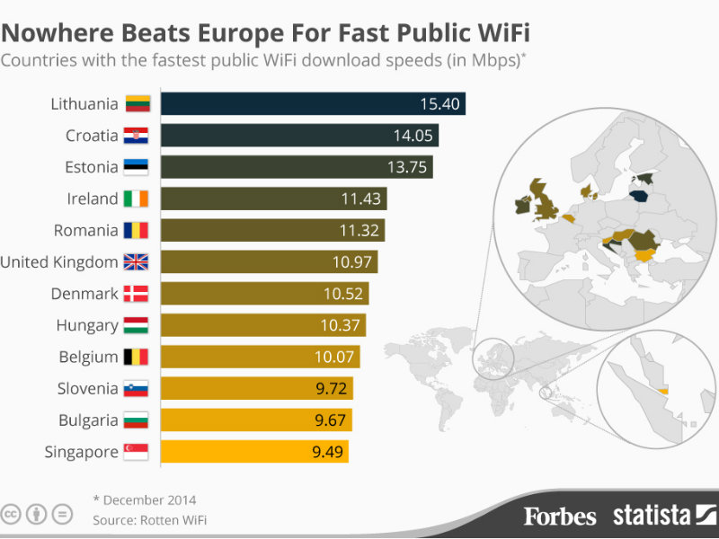 Compania Rotten WiFi a măsurat conexiunile din 172 de țări, iar Lituania s-a clasat pe primul loc în toată lumea. Croația şi Estonia ocupă celelalte locuri pe podium, în timp ce Irlanda și România sunt următoarele în clasament.
